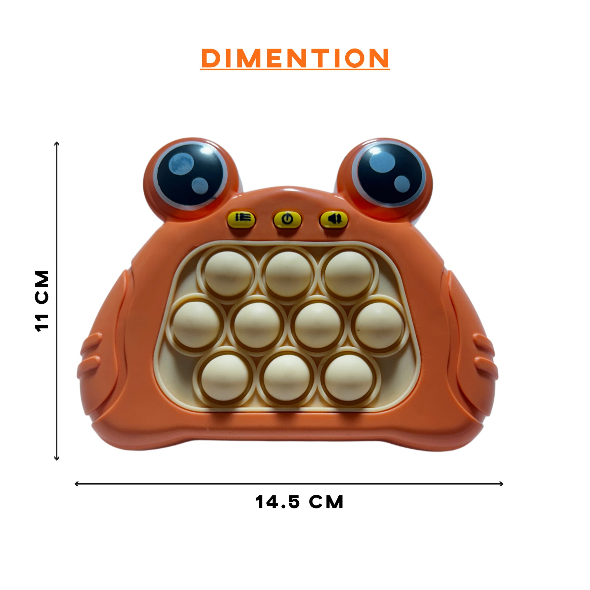 DESIGN: Crab-shaped pop fidget toy featuring 10 bubble-like buttons and cute cartoon eyes, perfect for sensory play and stress relief